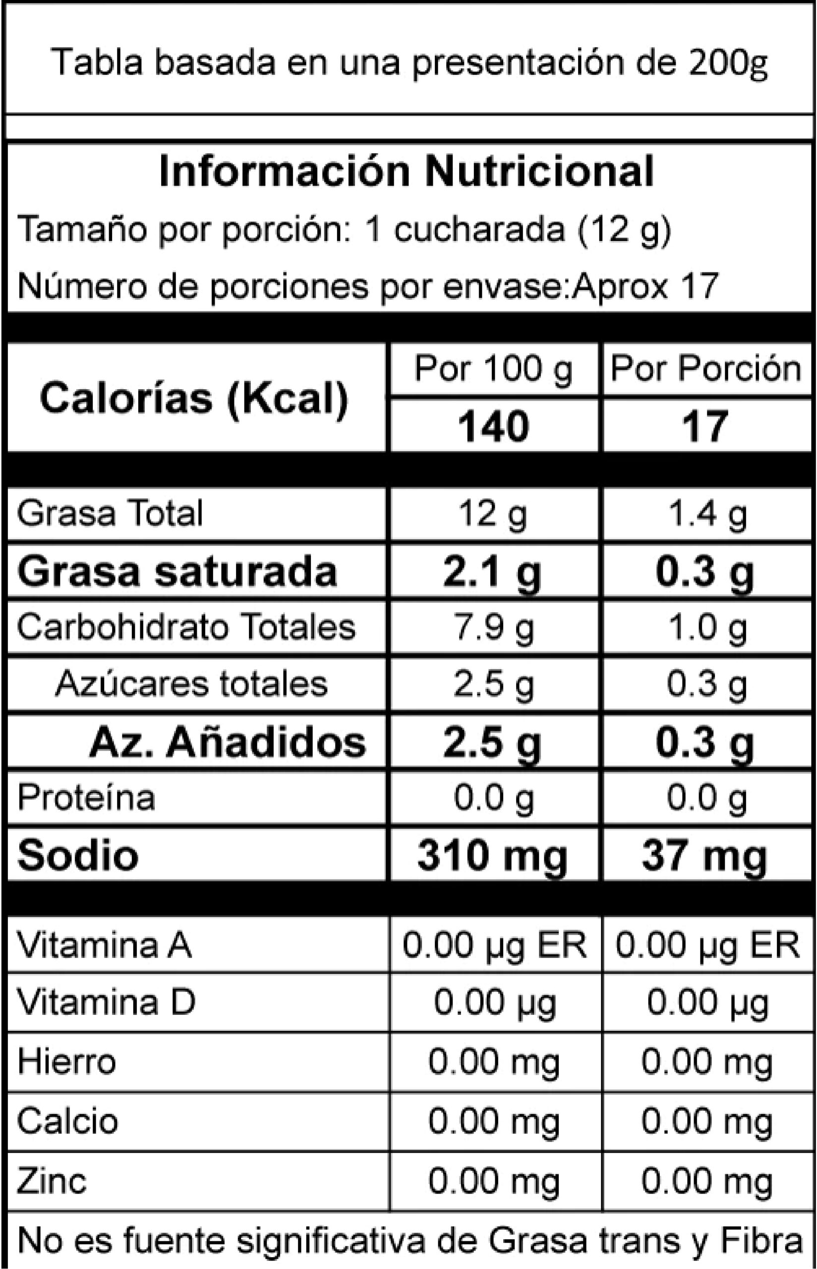 Baja en grasa y calorías. Una mayonesa enteramente dedicada a los amantes del gran sabor que desean conservar su línea. De provocativa consistencia espesa es ideal para enriquecer todo tipo de comidas rápidas. Elaborada con aceite vegetal de soya y vinagre natural.